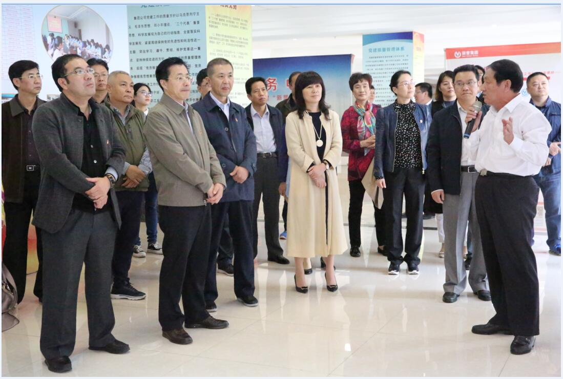 隨后,領導們來到黨群服務中心,重點參觀和了解集團的黨建工作情況。集團黨委副書記杜伯坤從黨委創新打造“學習型、服務型、創新型、勤廉型”黨組織等方面,介紹了集團黨組織的基本情況、圍繞生產經營開展黨的建設的主要做法以及做好黨建工作的思考和體會。