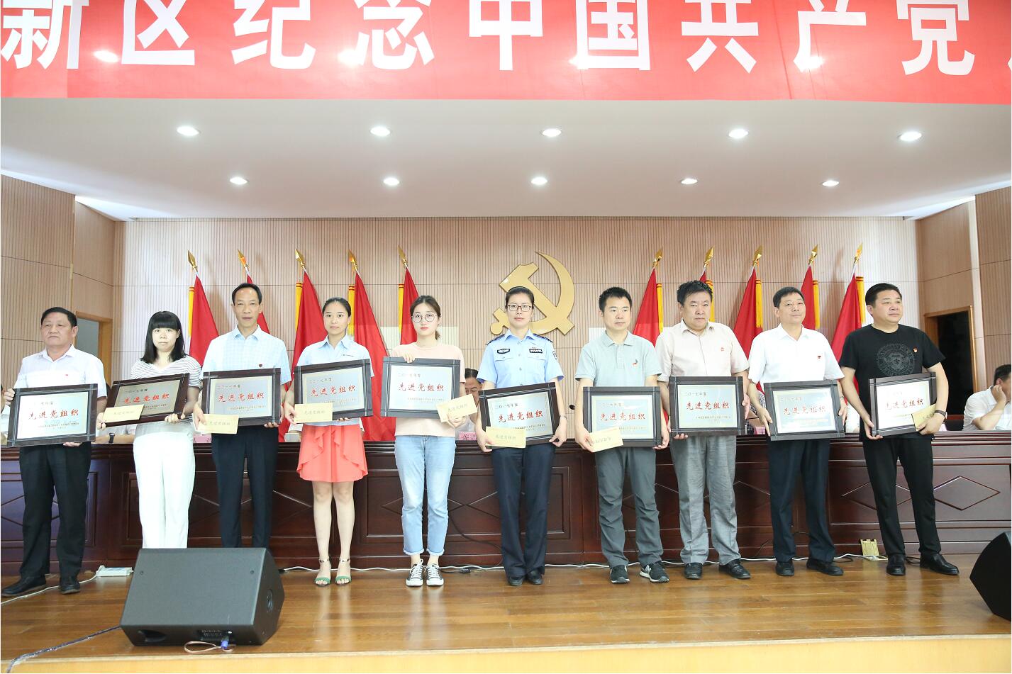 新譽(yù)集團(tuán)黨委被授予“二〇一七年度先進(jìn)黨組織”(左一)。