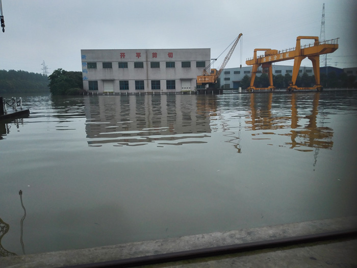 “運河水位離碼頭最低處還有4公分!”每年老廠區是遭遇洪澇災害的重點部位,在連日大雨的侵襲下,7月3日中午,老廠碼頭水位漲至今年最高。十多名員工迅速將黃沙裝袋,堵住離河岸最近的開平車間的兩個大門,以防水患。隨著雨勢漸弱,水位不再上升,至今晨4點,水位已有明顯下降。新譽碼頭度過該次險情。此外,老廠區的風電塔筒車間積水較嚴重,但參與防汛抗災的員工及時排水,車間內電纜等設施設備未受到嚴重影響。